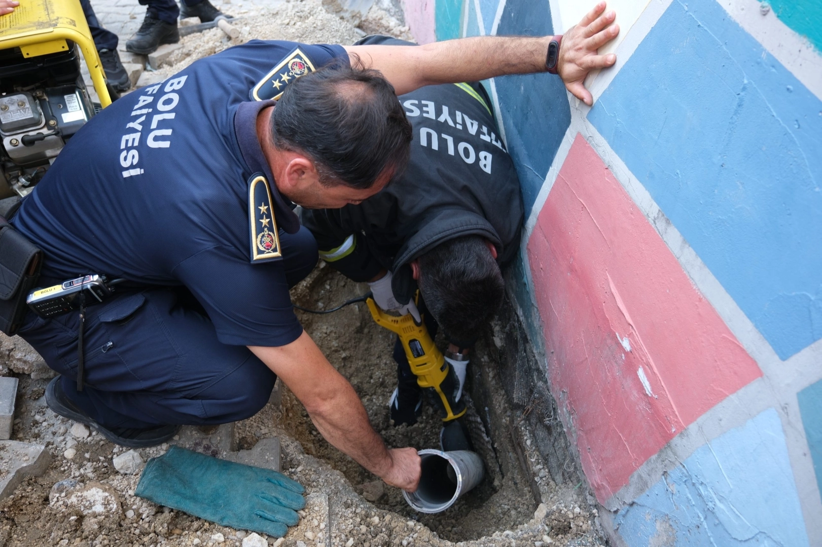 BOLU (İGFA) - Bolu iline bağlı Borazanlar Mahallesi’nde bulunan bir özel okulun önündeki borudan içeri düşen yavru kedi, civarda bulunan duyarlı bir vatandaşın belediyeye haber vermesi üzerine kurtarıldı. 1 buçuk metrelik derinlikte sıkışıp kalan yavru kediyi kurtarmak için seferber olan ekipler, öncelikle borunun üzerindeki betonu kırdı. Ardından itfaiye aracında hazır bulunan elektrikli kesim motoruyla boru kesildi ve yavru kedi sağ salim çıkartıldı.
