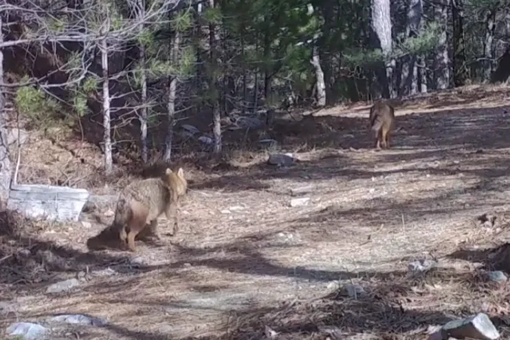 Görüntülenen iki Altın Çakal (Canis aureus), genellikle gece aktif olan ve insanlardan uzak duran türün orman ekosistemindeki önemini ortaya koydu.