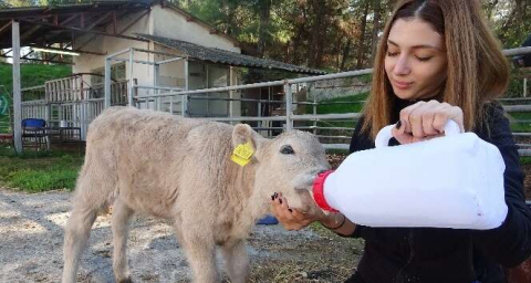 Diğer 5 arkadaşı ile birlikte bahçede koşuşturan Karamel ismindeki buzağı, sevimliliği ile herkesin yüzünü güldürdü.