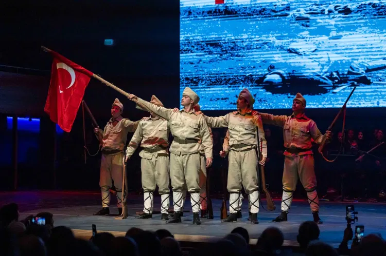 Gösteriyi İzmir Büyükşehir Belediye Başkanı Dr. Cemil Tugay ile eşi Öznur Tugay da sanatseverlerle birlikte izledi. Balkan Savaşları’nın yorgunluğunu yaşayan bir halkın, Çanakkale siperlerinde sergilediği direniş ve kahramanlık üzerinden bir ulusun yeniden ayağa kalkışını konu alan eser, sahne diliyle izleyicilere duygusal anlar yaşattı. İzmir Büyükşehir Belediyesi Türk Halk Müziği Korosu, anlatının duygusal zeminini oluşturan ağıt ve kahramanlık türkülerini seslendirirken, Türk Halk Oyunları Topluluğu ise tarihsel süreci sahneye taşıdı.